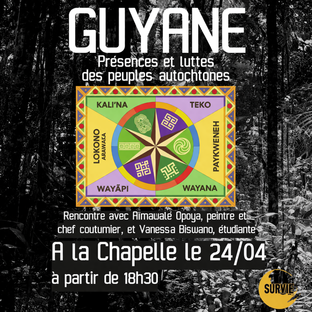 Rencontre avec Aimawale Opoya (peintre de ciels de case et chef coutumier du peuple Wayana) et Vanessa Biswano (étudiante, peuple Lokono-Arawak) sur l’état des lieux des luttes autochtones en Guyane.