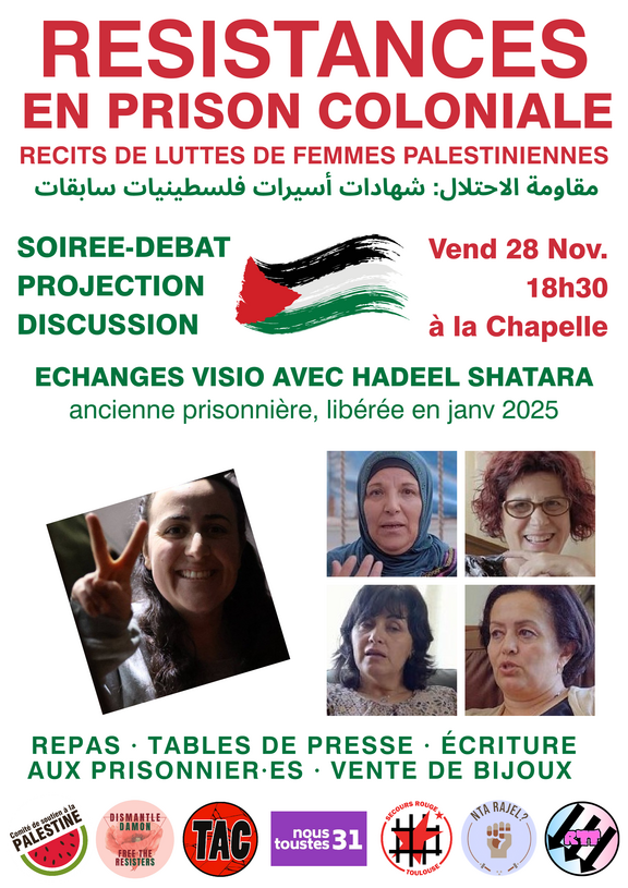 Résistances en prison colonialeRécits de luttes de femmes palestiniennes En lien avec la journée internationale de lutte contre les violences sexistes et sexuelles, nous choisissons de mettre au centre la...