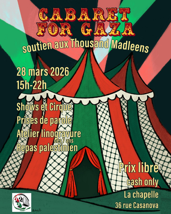D'ici quelques semaines, nous naviguerons vers Gaza avec une flottille plus importante, mieux coordonnée et plus internationale qu'auparavant L'enjeu est toujours double; augmenter pression et visibilité et tout faire pour atteindre Gaza. En tant qu'antenne toulousaine des Thousand Madleens To Gaza on mise tout sur l'organisation d'évènements pour lever des fonds sur cette dernière ligne droite. Ainsi,...