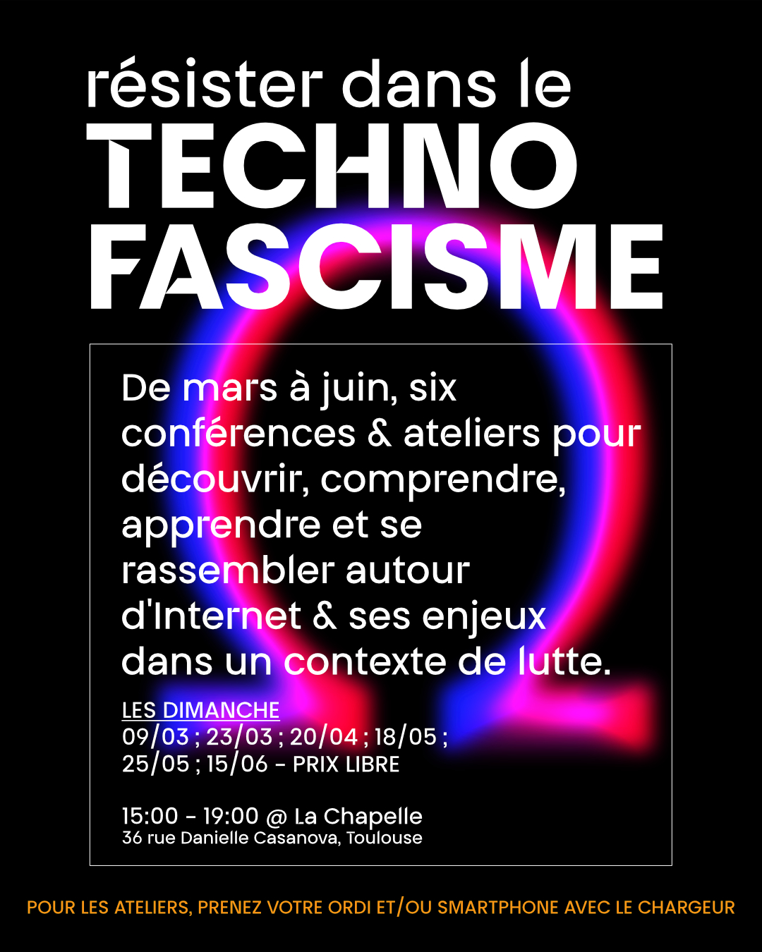 De mars à juin 6 conférences & ateliers pour découvrir , apprendre , comprendre et se rassembler autour d'Internet et ses enjeux dans un contexte de lutte.